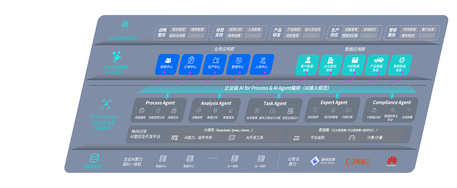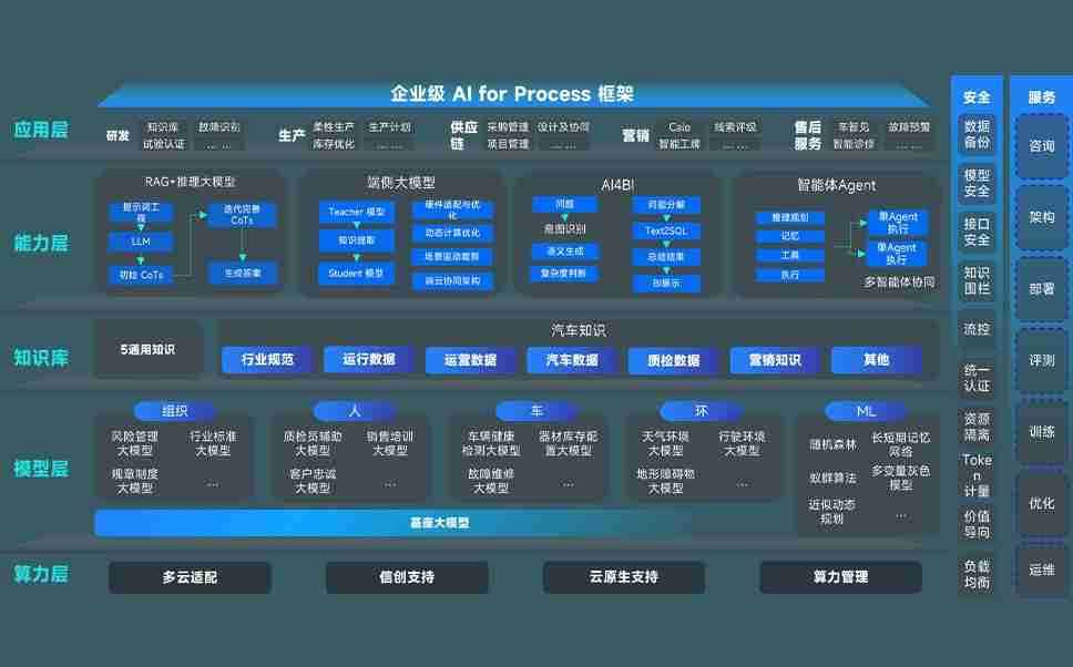端到端的一站式AI工作空间深度融合了从企业战略规划到日常经营的全流程业务板块,,定向解决车企内部领域多、、、部门多、、、链条长、、场景碎片化等难题,,,支持车企快速构建以AI为核心的生产力写作体系,,,实现任务执行与AI能力的无缝集成与交互